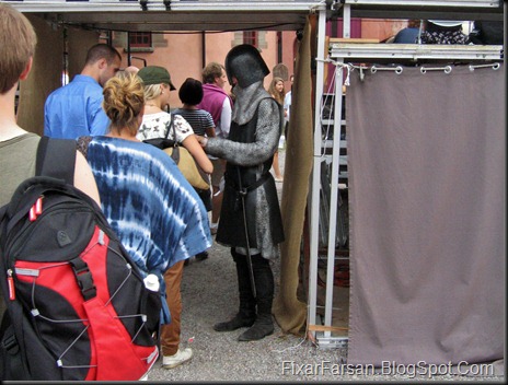 Biljettkontrollen gjordes av prins john’s vakter så teatern satte igång för våra pojkar (3 + 5år) redan där och de fick testa en annan vakts svärd och hjälm (tack, verkligen uppskattat!).