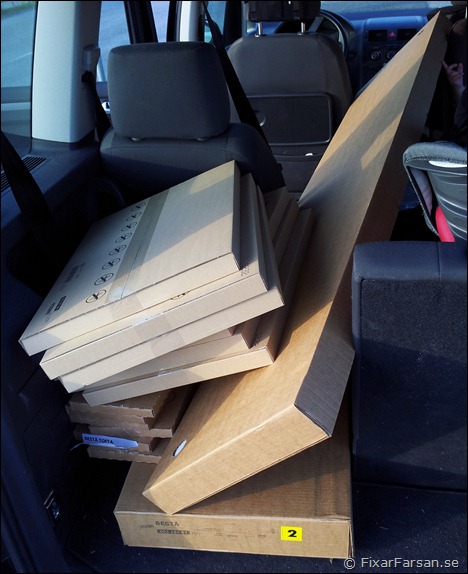 Med tanke på att ungarna badat i typ 3 timmar och tagit flera simmärken så gick det ändå fint att gå in, knata runt, prata med personal, välja modell, färg, lådfronter, äta middag, plocka på oss grejjorna, missa kartong 2/2, backa ur från kassakön och hämta missad del 2 med en vagn som hela tiden ville svänga höger för att sedan rulla hem..